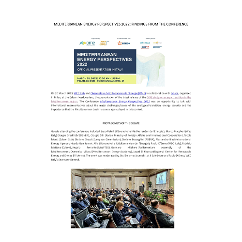 La presentazione in Italia dell'ultimo report OME è stata occasione per un dibattito internazionale sulle Transizione Energetica nel Mediterraneo. La rinnovata centralità del Bacino alla luce dei nuovi equilibri geopolitici, le opportunità della cooperazione tra le sponde del Mare Nostrum, le infrastrutture, gli investimenti e il ruolo dell'Italia: tutti gli spunti emersi dalla Conferenza promossa da WEC Italia ed Observatoire Méditerranéen de l'Energie - OME in collaborazione con Edison.